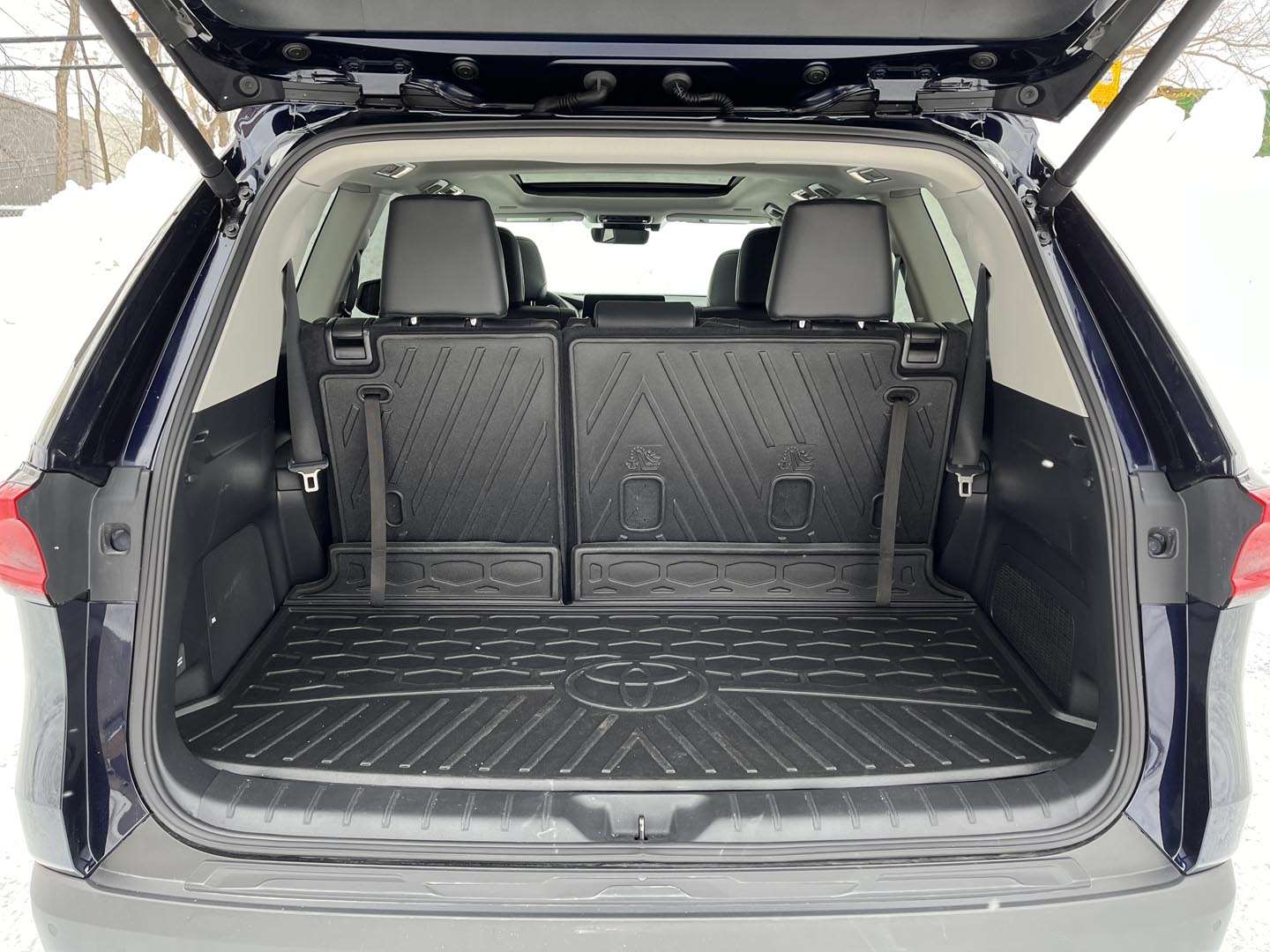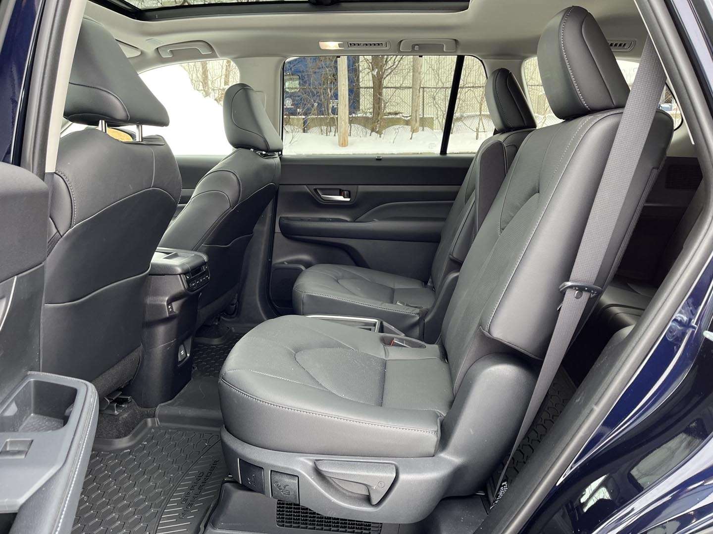 With its wide window area and near-horizontal sills, the Grand Highlander boasts great all-around visibility for a large SUV. The wide B-pillar slightly hinders lane changes, but the blind-spot monitoring system comes in handy. The surround-view system makes parking easier, however, the cameras need to be constantly cleaned in winter.