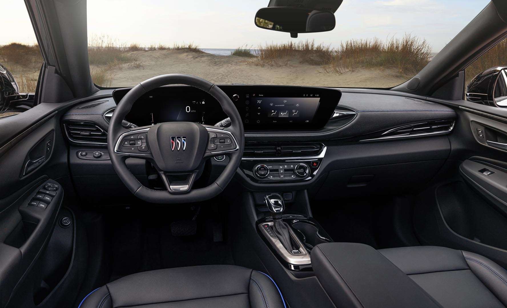 GM a accompli tout un boulot pour faire paraître l’Envista comme un véhicule de luxe, surtout dans la livrée Avenir. Garnitures chromées, phares de jour aguichants, jantes imposantes, cuir perforé, double écran numérique bien en évidence: toutes les tendances haut de gamme sont là au premier coup d’œil.