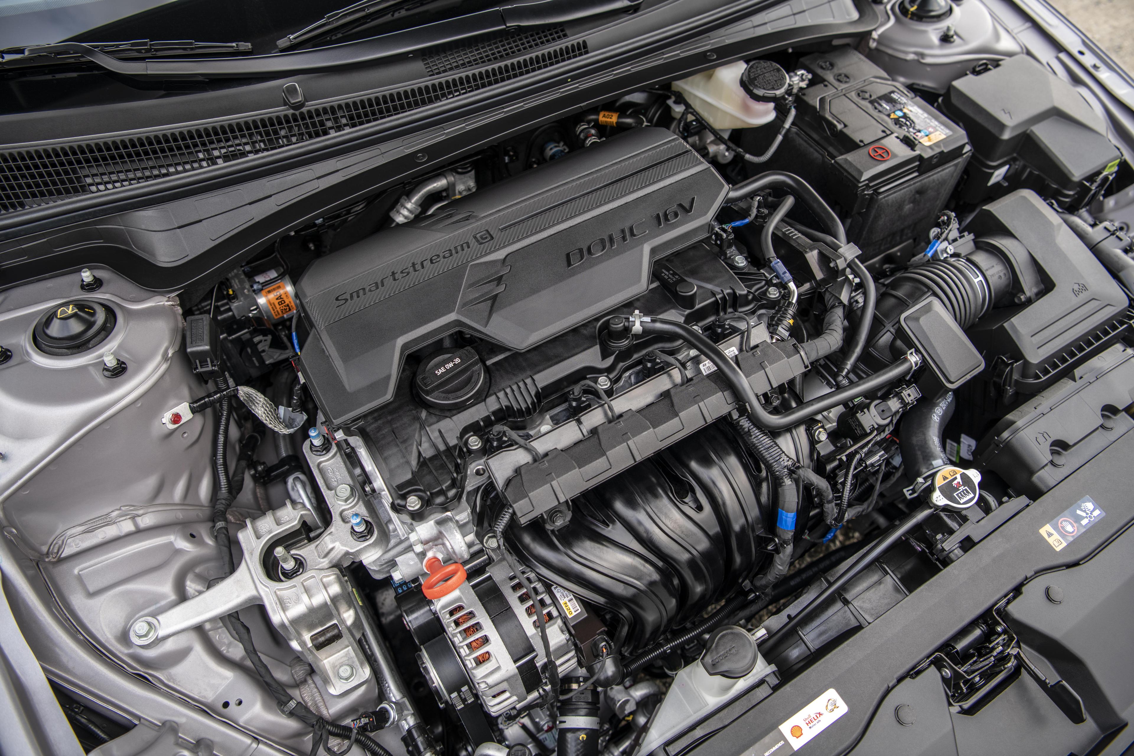 Rien de tout cela dans la majorité des Hyundai Elantra, qui sont plutôt livrées avec un moteur de 2 litres à cycle de combustion Atkinson – pour favoriser l’économie de carburant – et une transmission à variation continue. Reconduit depuis 2017, cet ensemble fournit 147 chevaux et un couple de 132 livres-pied, des valeurs légèrement inférieures à la moyenne de la catégorie. Comme dans toutes les Elantra, la puissance passe exclusivement par les roues avant.